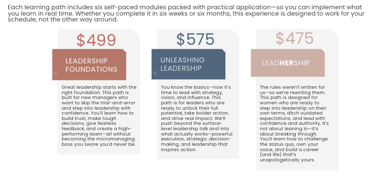 Bite-sized lessons, real-world impact. Our online learning is built for busy leaders—micro-lessons under 5 minutes, designed to fit into your day, not disrupt it. Watch a video, read the content, apply it immediately, and come back when you need a refresh. Your online coach tracks your progress, offering insights and recommendations to keep you growing, adapting, and leading with confidence.